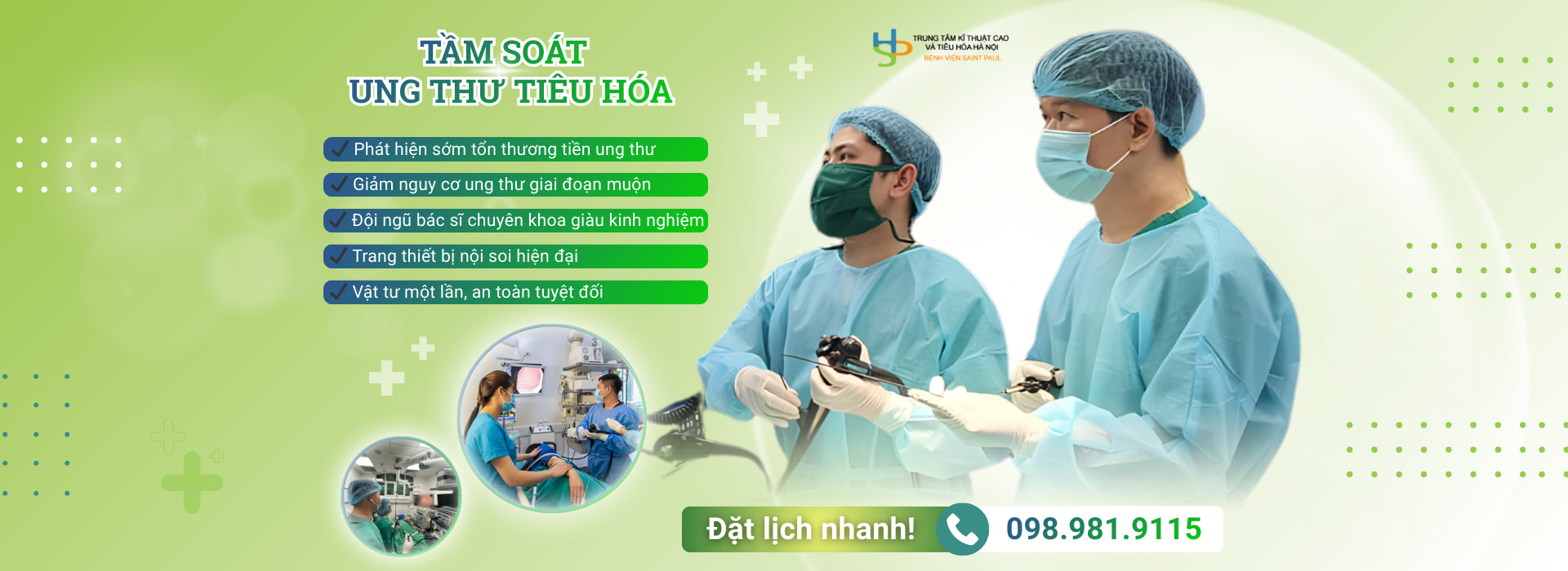 Trung tâm Kỹ thuật cao và Tiêu hóa Hà Nội – Bệnh viện Đa khoa Xanh Pôn cung cấp dịch vụ chuyên sâu và toàn diện theo tiêu chuẩn Châu Âu từ khám chữa bệnh đa khoa, chuyên khoa sâu, tầm soát sớm, chẩn đoán chính xác, điều trị hiệu quả các bệnh lý về tiêu hóa gan mật bao gồm cả ung thư